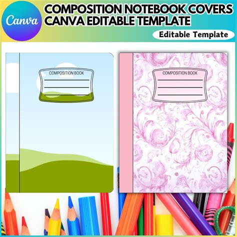 Composition Book | Notebook Cover Template Design | PDF, PNG And SVG