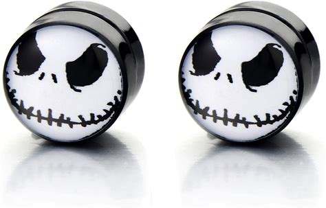 10mm Magnetic Black Circle Alien Stud Earrings For Men Women, Non-Piercing Clip On Fake Ear Plugs Gauges