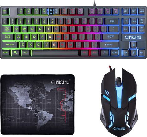CHONCHOW 87 Keys TKL Gaming Keyboard And Mouse Combo, Wired LED Rainbow Backlit Keyboard 800-3200 DPI RGB Mouse, Gaming For PS4 Xbox PC Laptop Mac